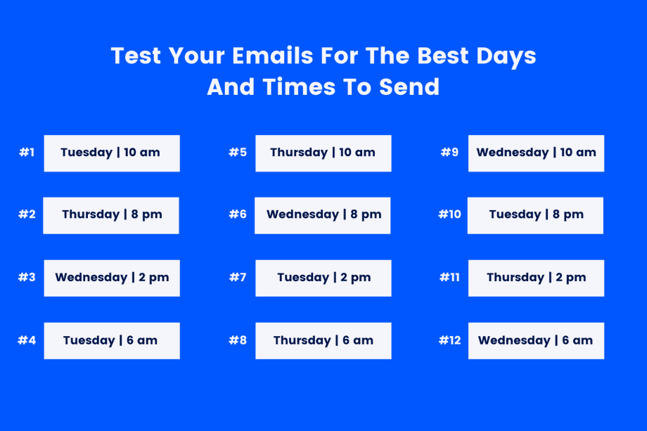 For instance, if providing B2B products or services, you may consider sending emails on Tuesdays. But if your products and services are entertainment industry-based, Friday or weekends are better options to send the emails.