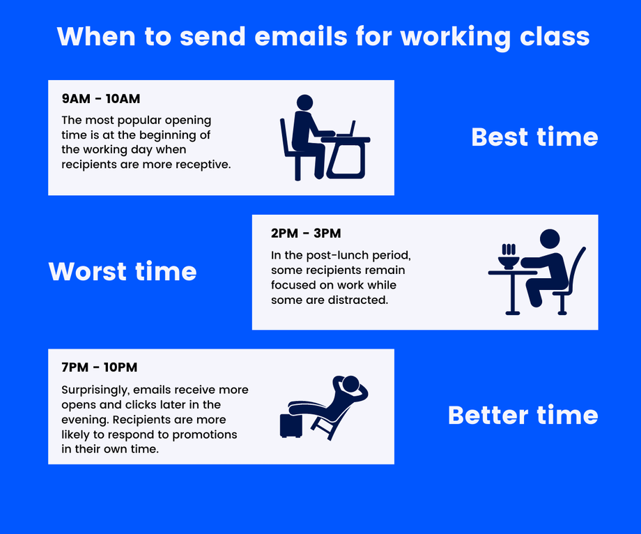 Email timing matters a lot because it affects your email campaigns' open and click-through rates big time.