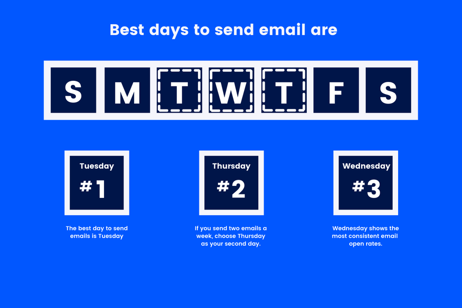The midweek days are considered the prime days to send your emails, i.e., Tuesday, Wednesday, and Thursday.
